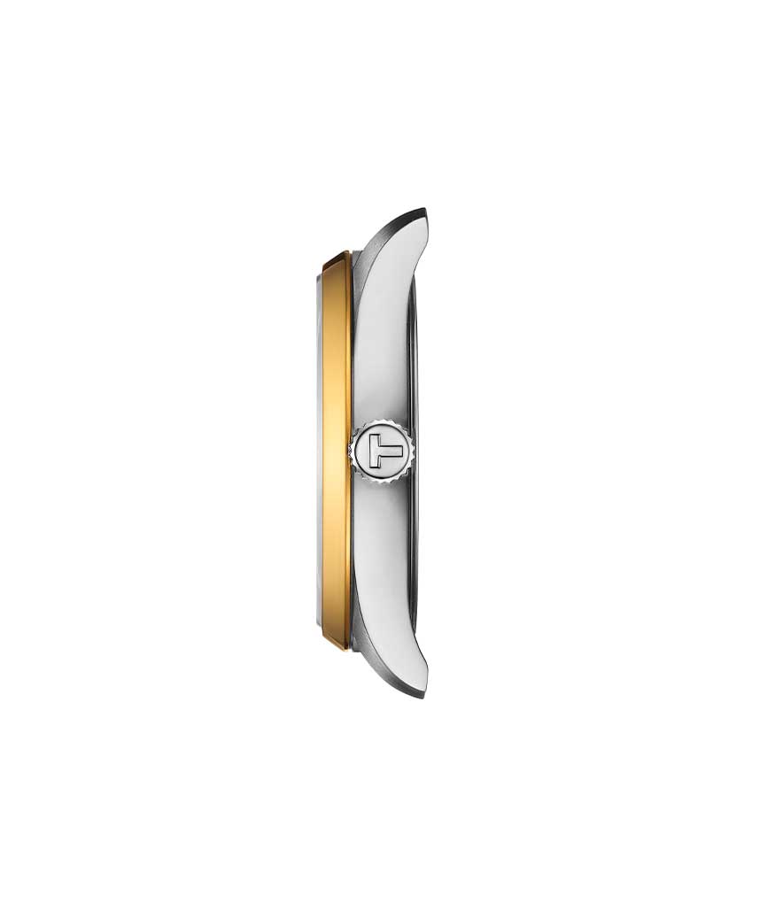 Tissot PR 100 34mm – T150.210.21.031.00 Quartz ur med en vandtæthed på 10 ATM/ 100 meter. Uret har safirglas, en urkasse i rustfrit stål/gul PVD coating, hvid urskive og stål lænke. Derudover har uret dato anvisning og måler 34mm i diameter.