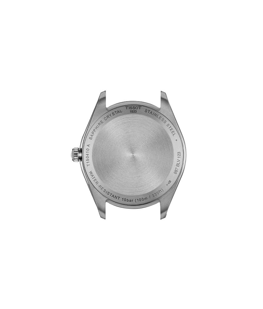 Tissot PR 100 Quartz 40mm – Quartz ur med en vandtæthed på 10 ATM/ 100 meter. Uret har safirglas, en urkasse i rustfrit stål, sort urskive og sort læderrem. Derudover har uret dato anvisning og måler 40mm i diameter.